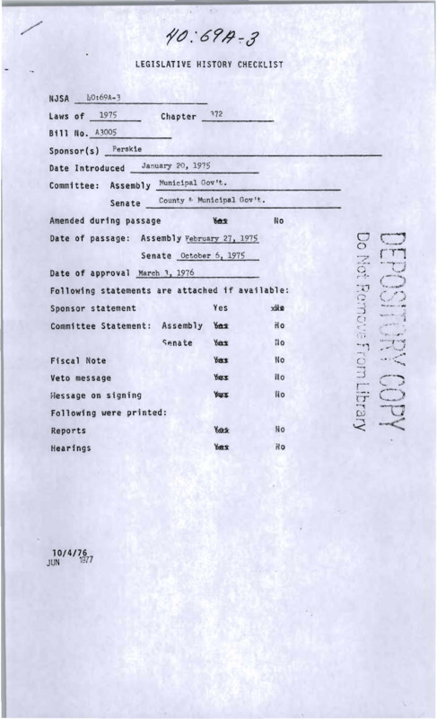 NEW JERSEY LEGISLATIVE HISTORIES