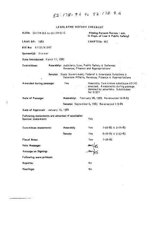 Missing Persons Bureau -est. in Dept. of Law & Public Safety