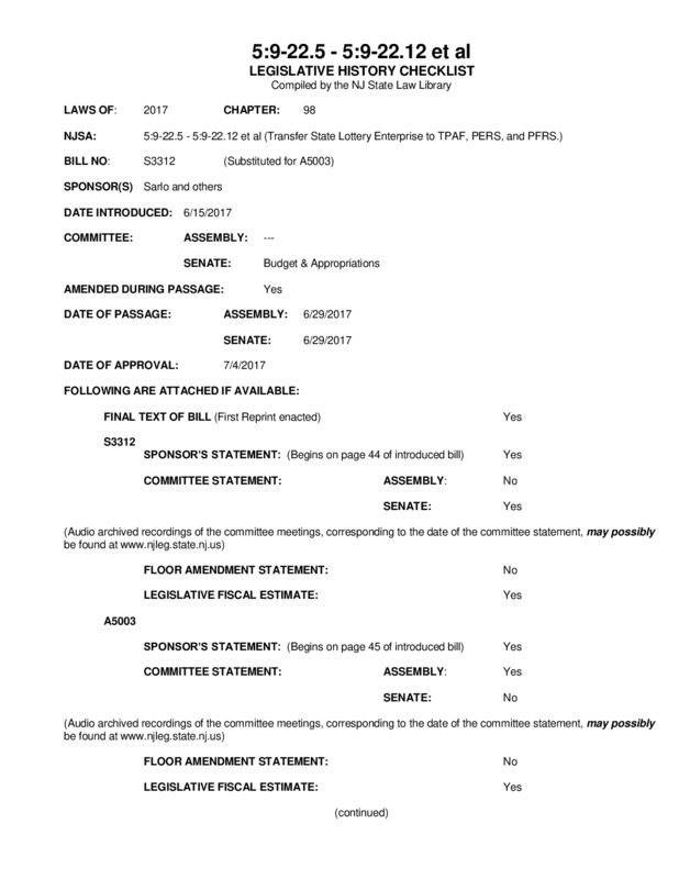 NEW JERSEY LEGISLATIVE HISTORIES