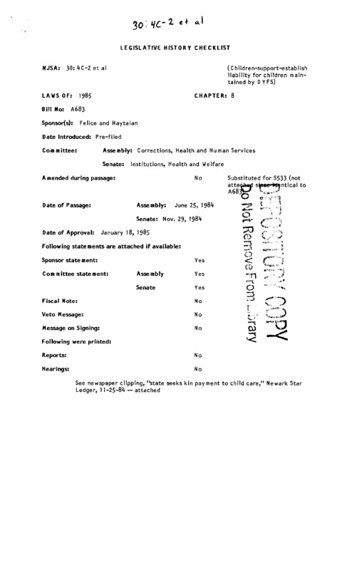 Children-support-estabIish liability for children maintained by DYFS