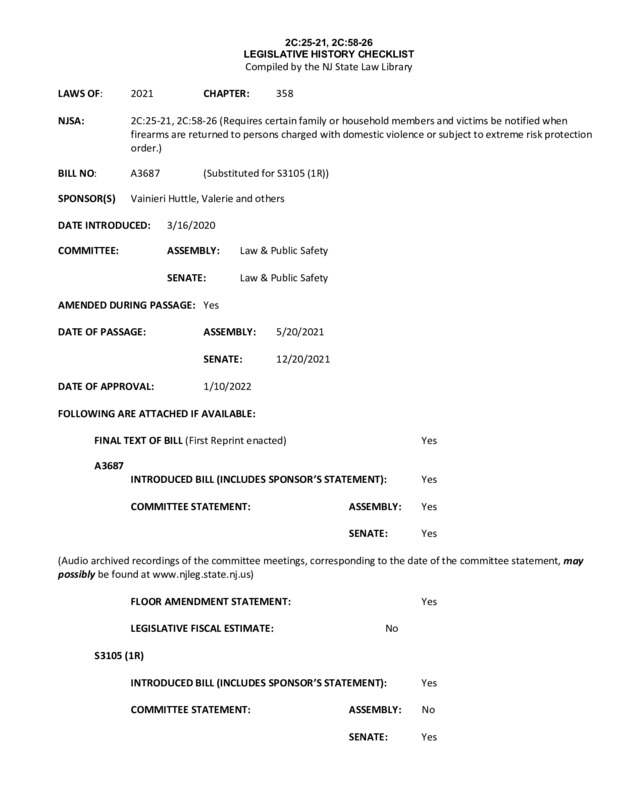 Requires certain family or household members and victims be notified when firearms are returned to persons charged with domestic violence or subject to extreme risk protection order.